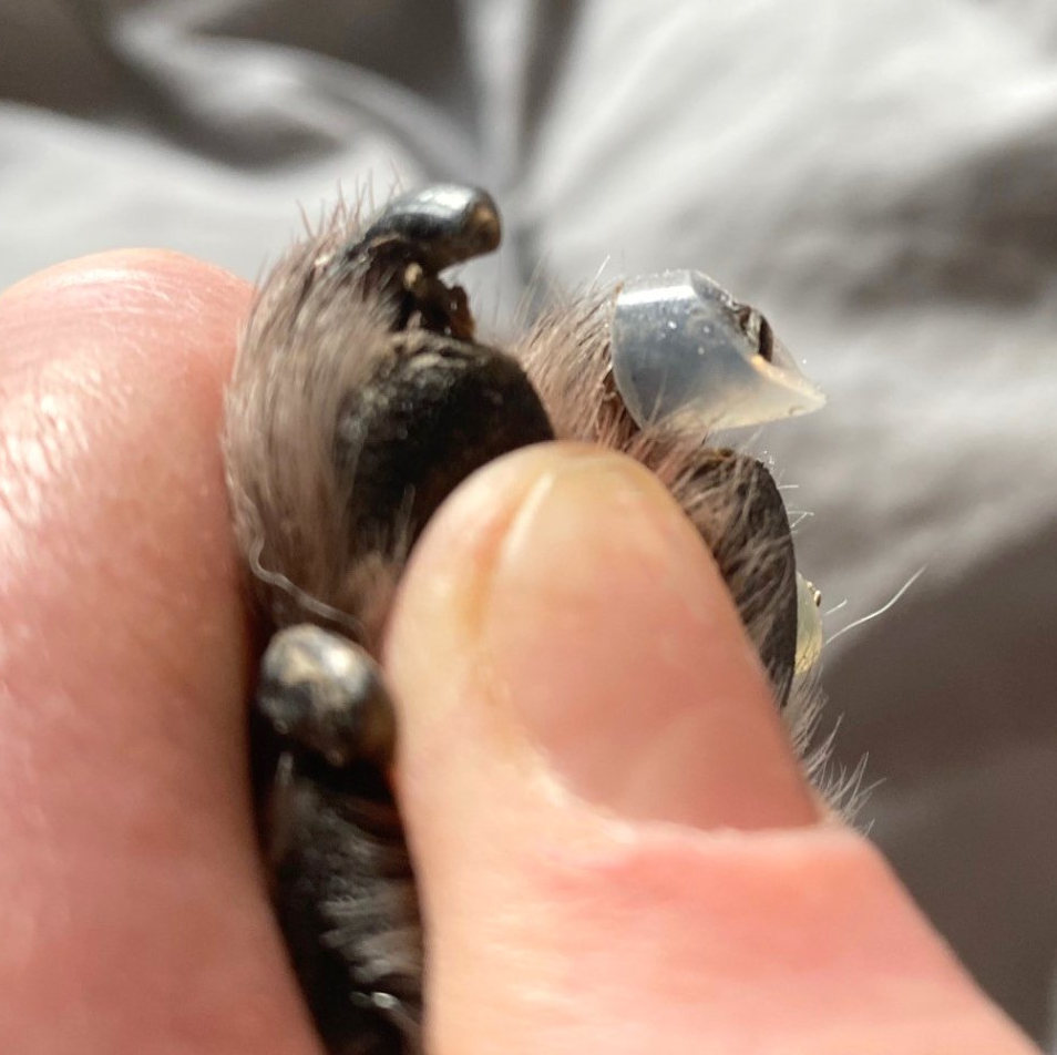 So sitzt der Grippy perfekt. Der Kleber ist im getrockneten Zustand transparent, so das Du die Krallen weiterhin gut sehen/beurteilen kannst.